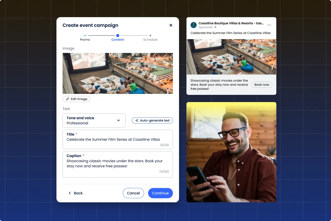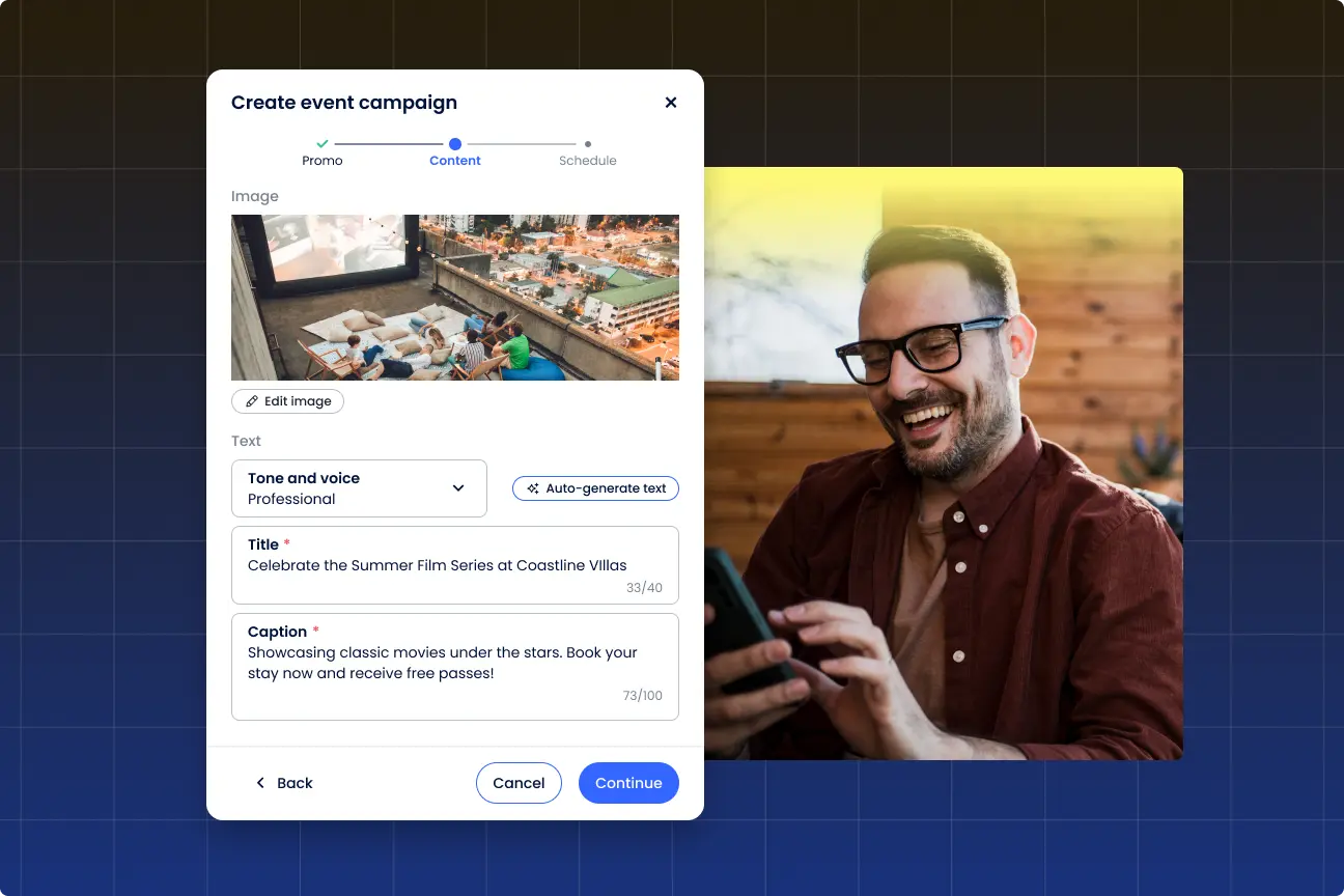 Grow direct bookings by 25% with smart auto-generated campaigns targeted at guests most likely to book.