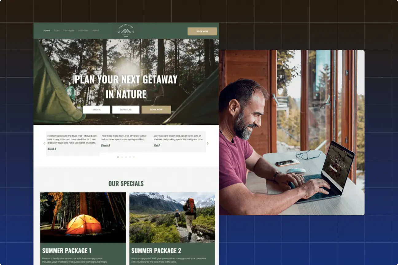 Drive more booking conversions with beautifully designed and smartly updated websites using smart page creation and AI SEO tools.