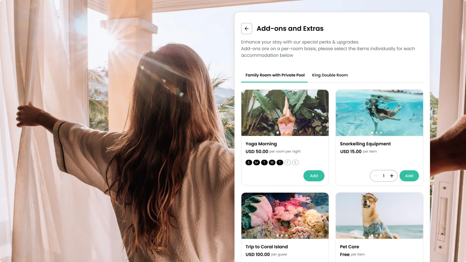 Turn every booking into a bigger opportunity. Effortlessly offer one-click upsells and add-ons, from room upgrades to local experiences.