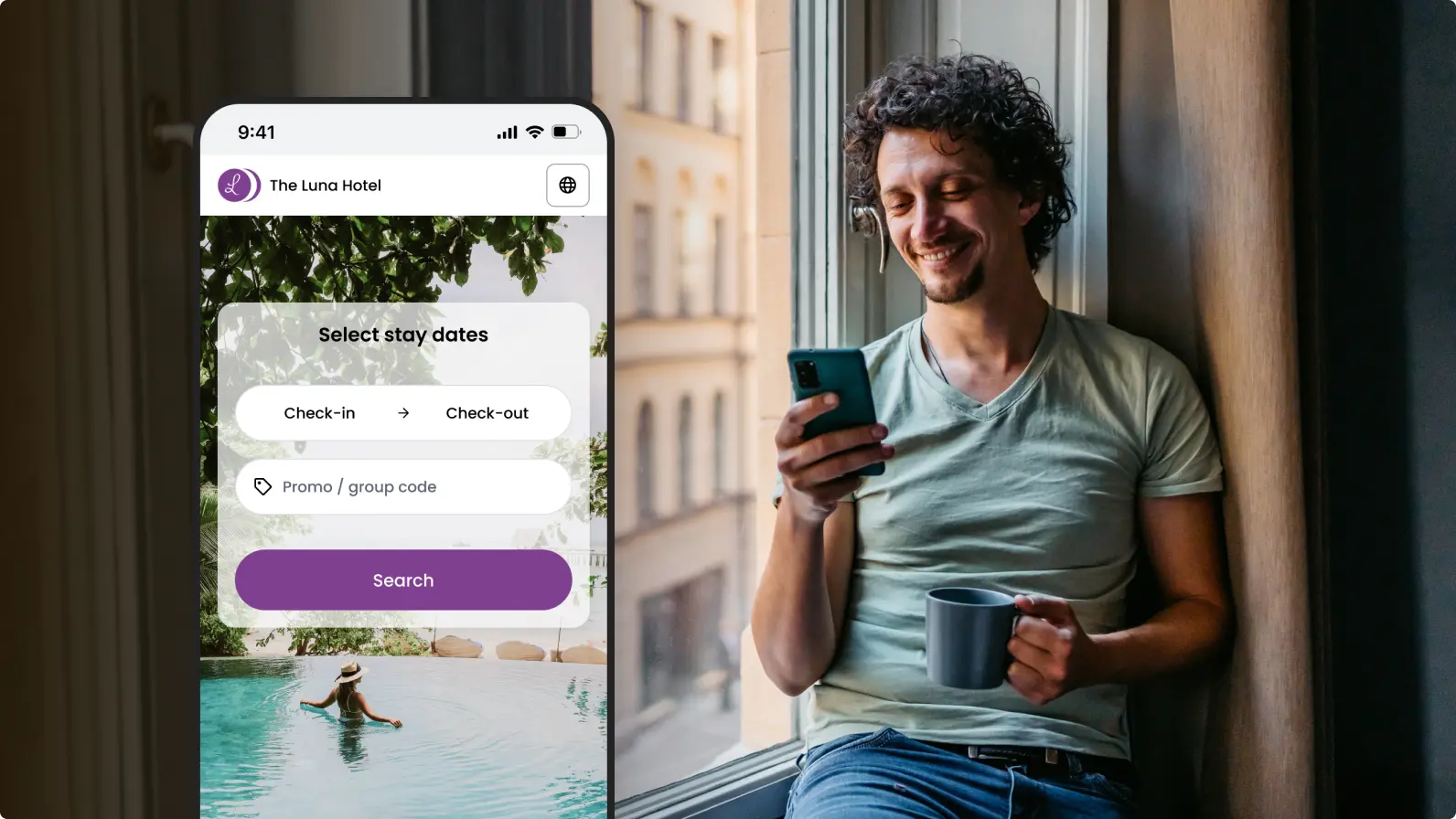 Own your first impression with a beautifully branded booking experience built for today’s traveler β€” mobile-first, two steps, any device. Guests book faster in their own language and currency, while you save up to 30% in OTA commissions every time.