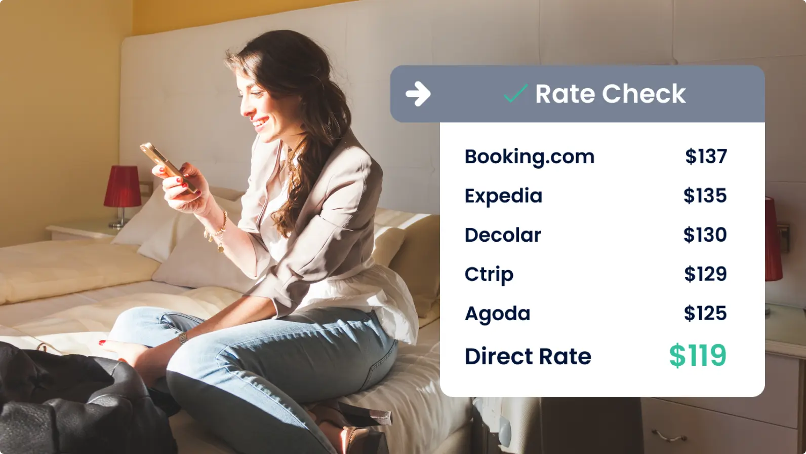 Don’t just take bookings, build better ones. From onsite rate checks to irresistible upsells, turn every moment of hesitation into a moment of “heck yes.”