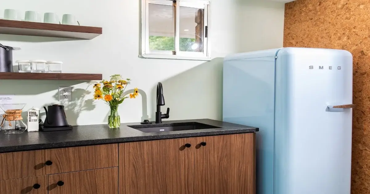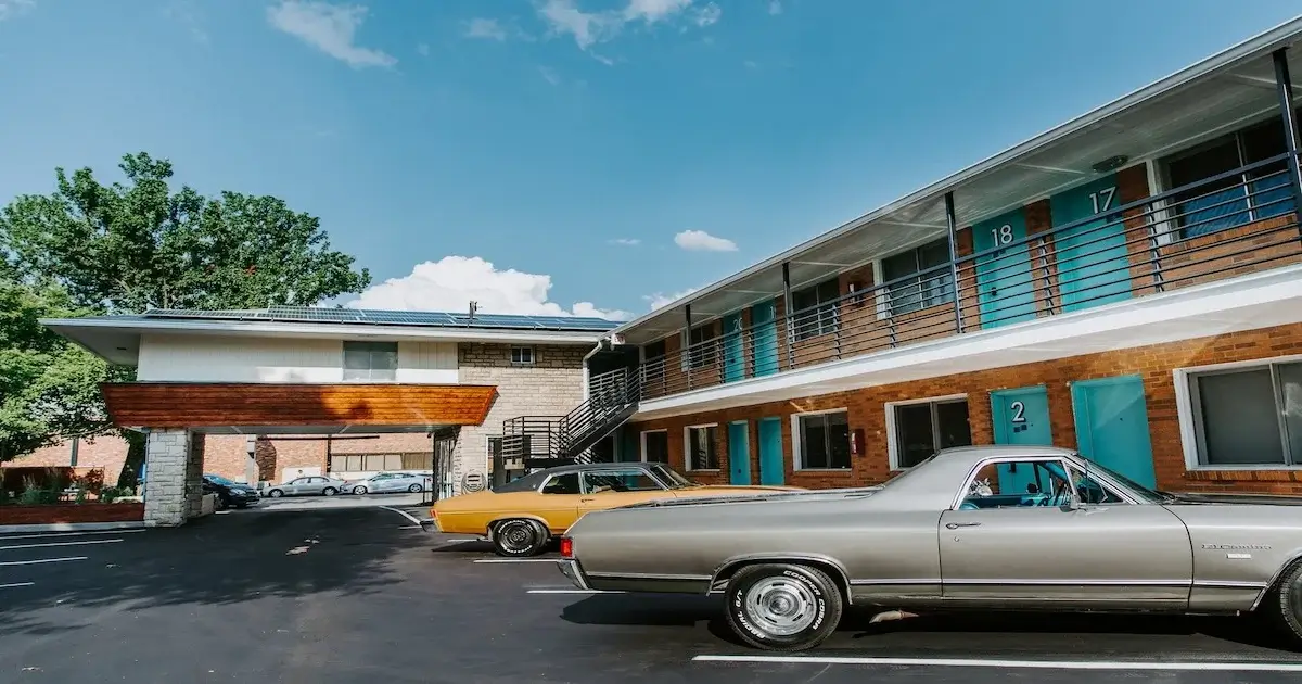 The South Wind Motel, located in the historic German Village just south of downtown Columbus, Ohio, gives travelers a revived and reimagined mid-century motel experience. The motel, originally built in 1959, brings all of its original charms but, after significant renovations, has been elevated to include unique contemporary touches like custom walnut furniture, sustainable and ethical skincare products, Chemex coffee makers with local coffee, and solar panels powering 100% of its electricity.