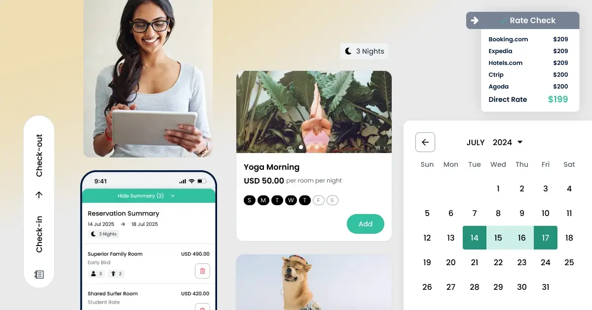 • Multi-property tools: Manage rates, availability, and reporting across locations.