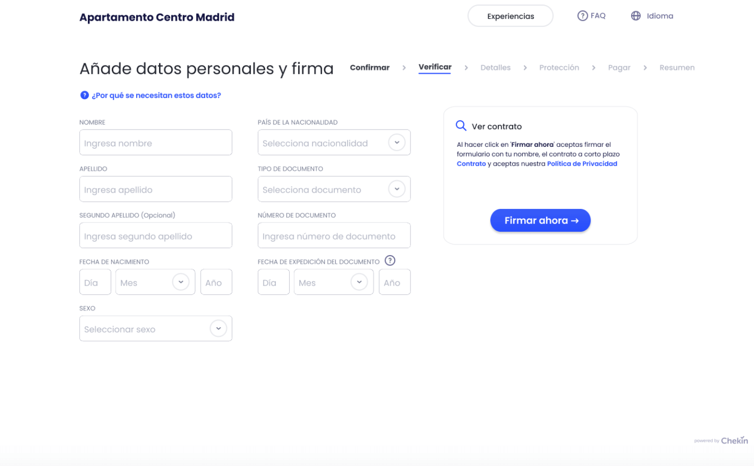 • Chekin protege tu propiedad contra posibles daños, fraudes o robo de identidad. Garantiza la seguridad en tu propiedad y evita multas por no cumplir con los requisitos legales.