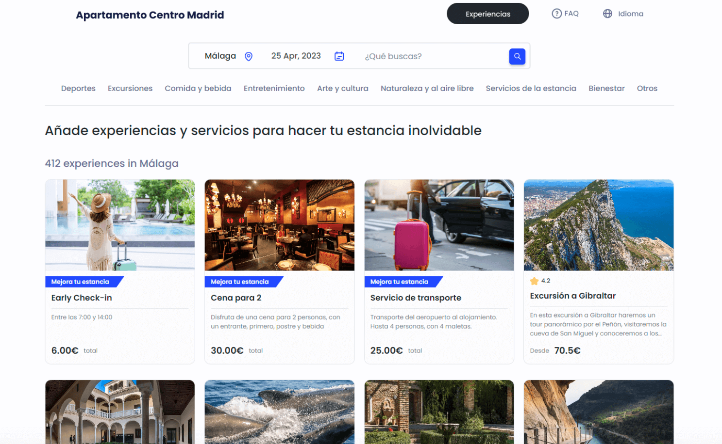 • Aumenta tus ingresos vendiendo experiencias personalizadas accesibles para los huéspedes durante su estancia. Nuestros clientes han obtenido un 35% más de ingresos. Las experiencias más populares son: estancias con mascotas, late check-out, early check-in, transporte al aeropuerto, climatización de piscina, parking privado, etc.