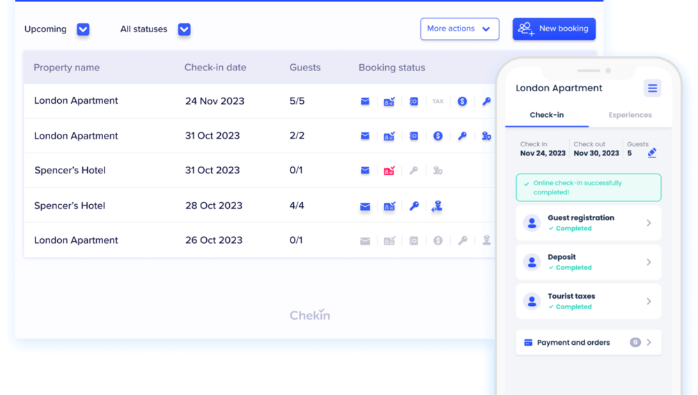 • Chekin automatiza tus operaciones para ahorrar tiempo. Además, utiliza la funcionalidad de Upselling para ofrecer servicios adicionales durante el proceso del check-in, generando ingresos extra por cada reserva.