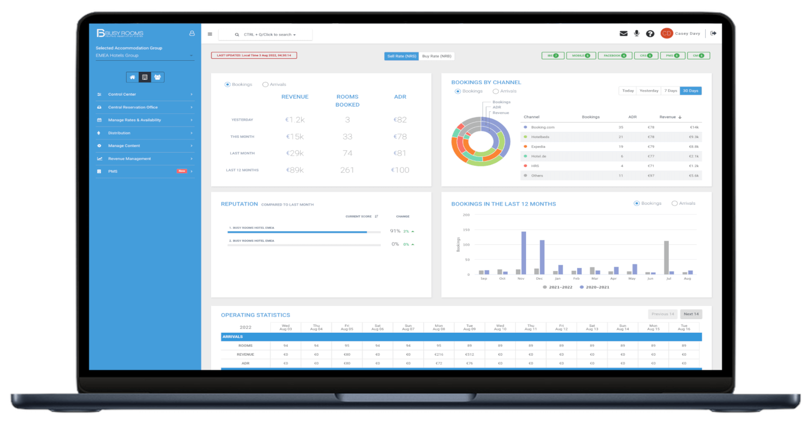 With Busy Rooms CRS, our clients gain complete control over their daily sales, marketing, distribution and operations—simplified and unified on a single platform. Our open technology combines innovation with a personal touch, ensuring we meet the unique needs of every partner to maximise revenue.