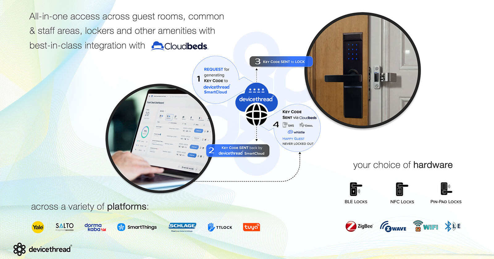 Real-time reservation sync with Cloudbeds ensures uninterrupted access for guests including walk-in guests with automatic key delivery to their phone without requiring an app download.