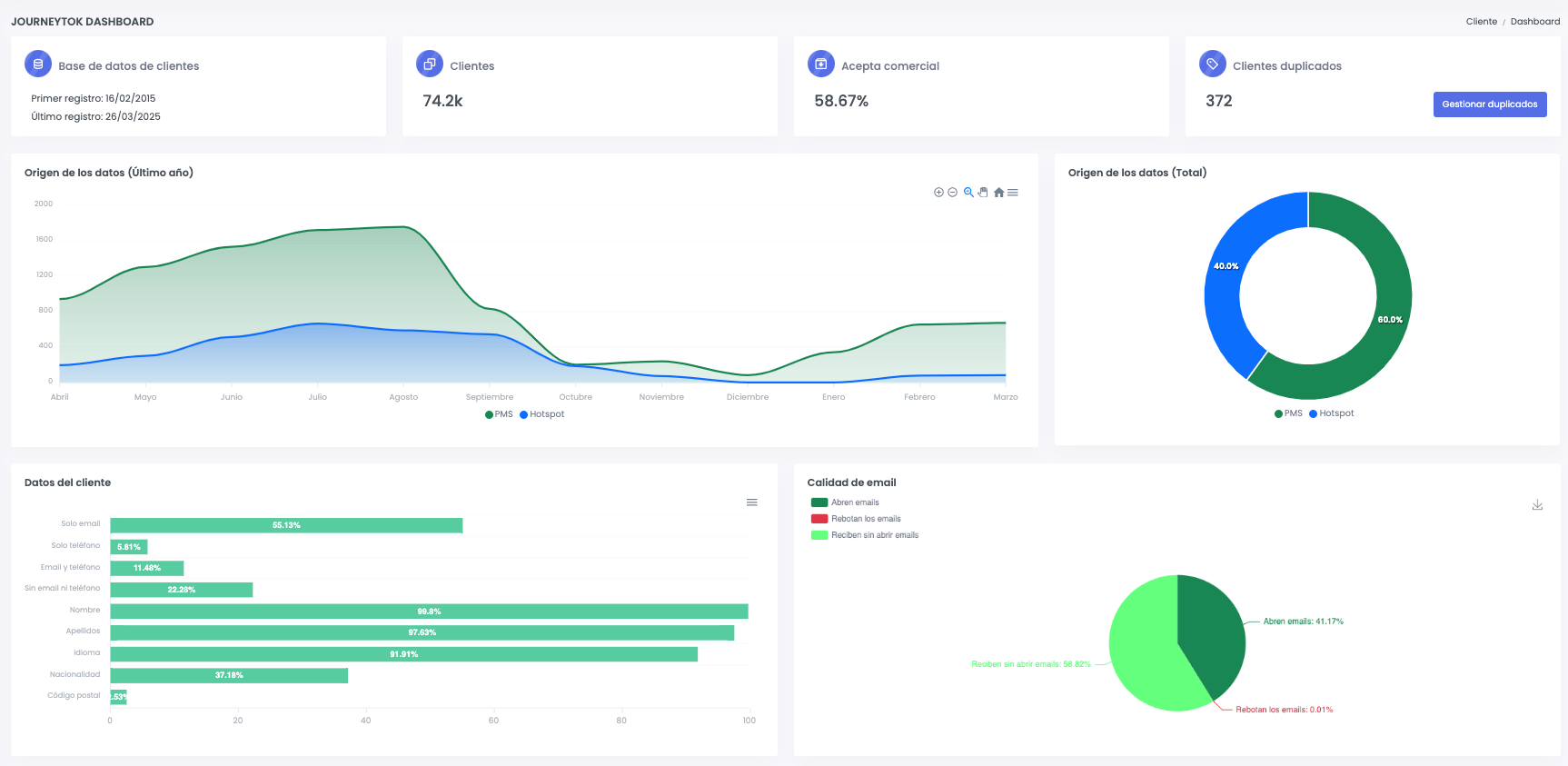Journeytok has a suite of solutions that use AI to help hoteliers automate omnichannel communication (email, whatsapp, sms…) with their guests, send hyper-segmented campaigns and build guest loyalty to keep them coming back.