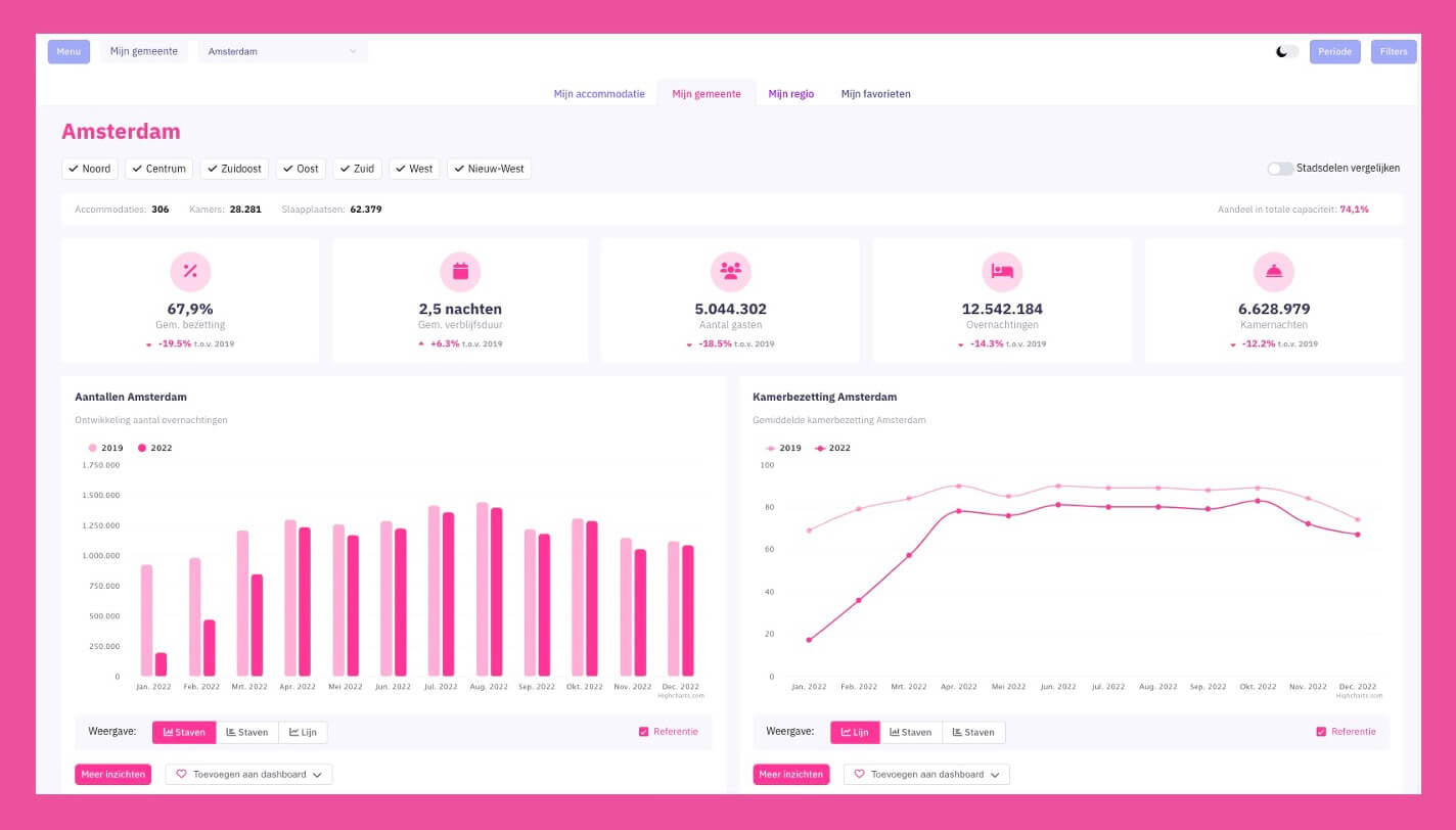 Connected properties have access to the current insights for their city. They can use these insights to benchmark their own statistics against those on the level of the city and region. Furthermore, the mandatory CBS statistics will be automated.