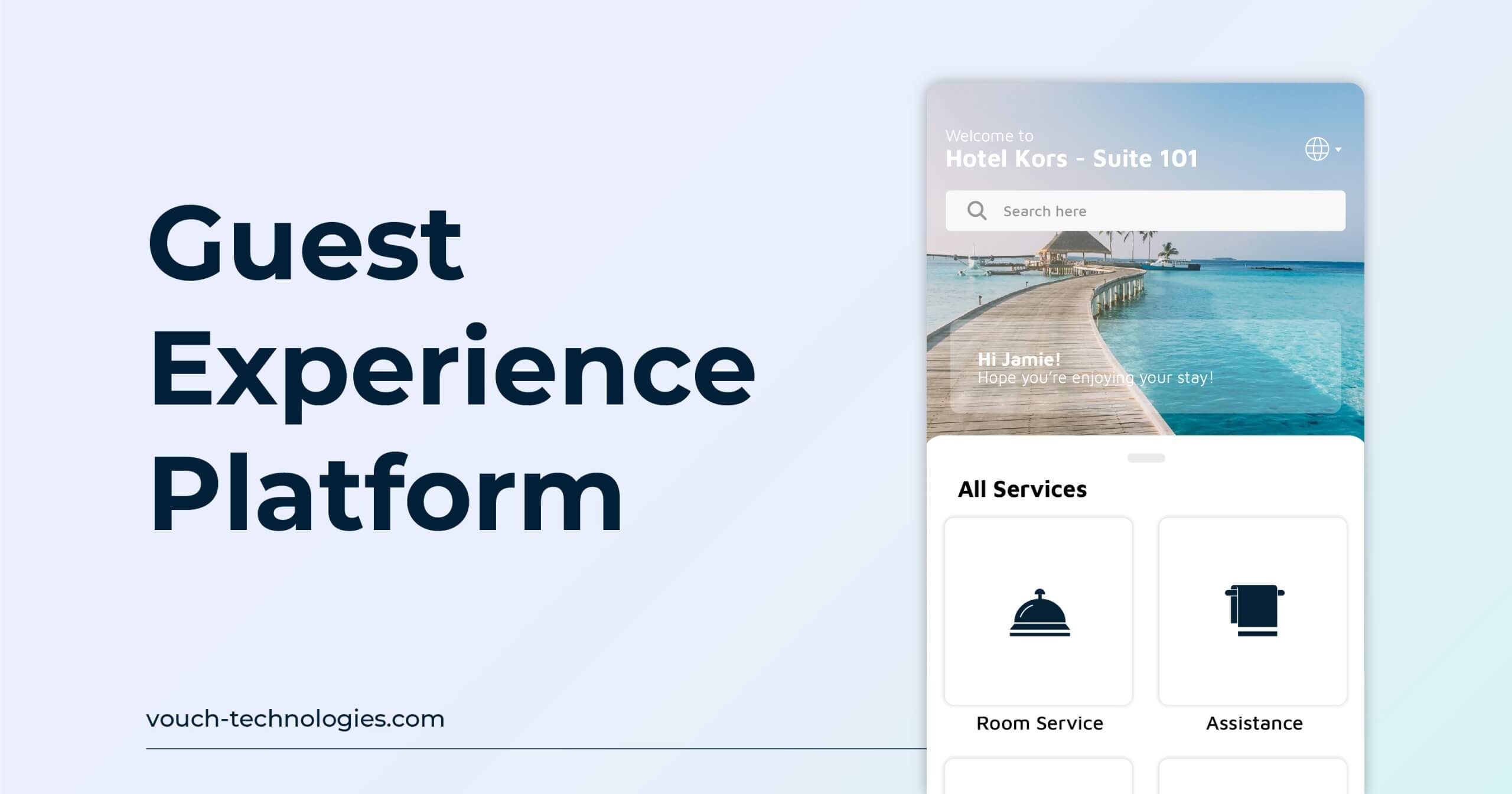Comprehensive digital hotel service platform that enables guests to make room service orders, housekeeping requests, facility bookings with upselling through their personal devices.