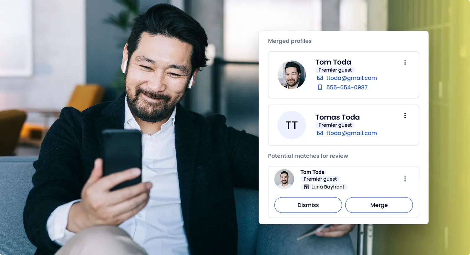 Centralize your guest data. Seamlessly identify, merge, and deduplicate guest profiles within the PMS to consolidate lifetime value, reservation history, and stay details across all properties.