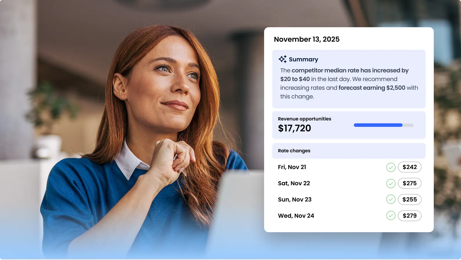 Command your entire portfolio β€” rates, availability, and revenue β€” from a single, powerful view.