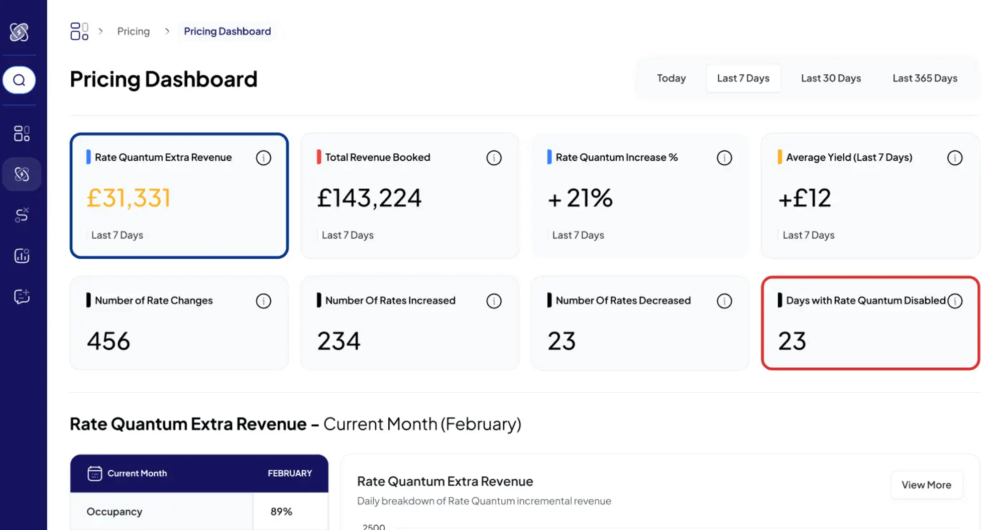 Rate Quantum é um sistema de gestão de receitas que utiliza ciência, IA e a mais recente tecnologia para determinar as tarifas corretas para o seu hotel. Uma vez configurado, ele gera autonomamente receitas adicionais com intervenção mínima humana.