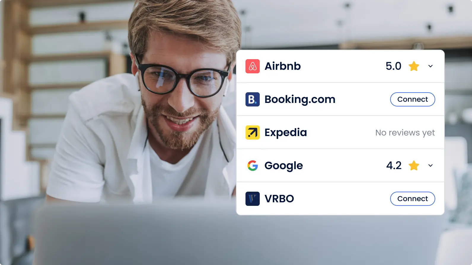 Booking.com, Expedia, Airbnb, Vrbo, Google, and more β€” all automatically imported into your dashboard.