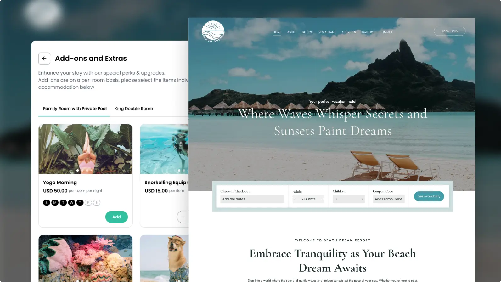 Drive up to 25% more direct bookings with a website that’s intelligently connected to your entire operation β€” from booking engine to guest communications and upsells.
